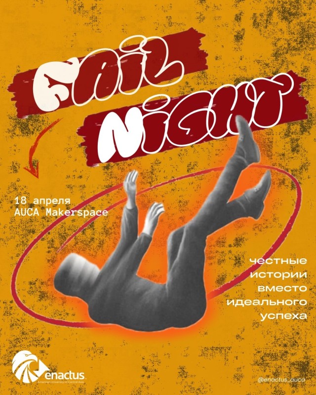Enactus AUCA приглашает именно тебя на «Вечер провалов» — мероприятие, где мы разбиваем стереотипы об идеальном пути. Никакой душной теории и успешных кейсов. Мы выходим за рамки программ, чтобы честно обсудить то, о чем обычно молчат: громкие провалы, личные кризисы и жесткие уроки, которые преподает только реальная жизнь.