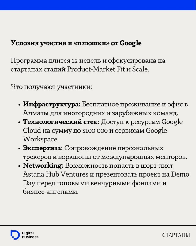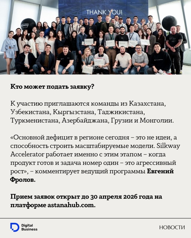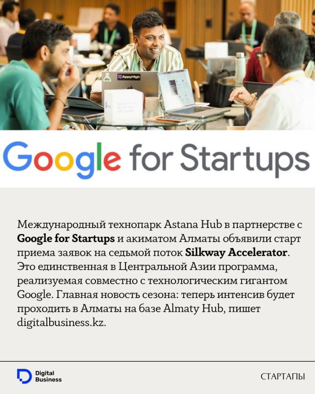 Международный технопарк Astana Hub в партнерстве с Google for Startups и акиматом Алматы объявили старт приема заявок на седьмой поток Silkway Accelerator. Это единственная в Центральной Азии программа, реализуемая совместно с технологическим гигантом Google.