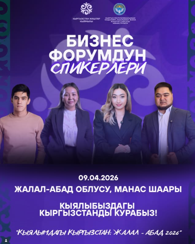 “Кыялымдагы Кыргызстан 2026” жаштар форумунун алкагындагы бизнес-форумдун кийинки спикерлери: