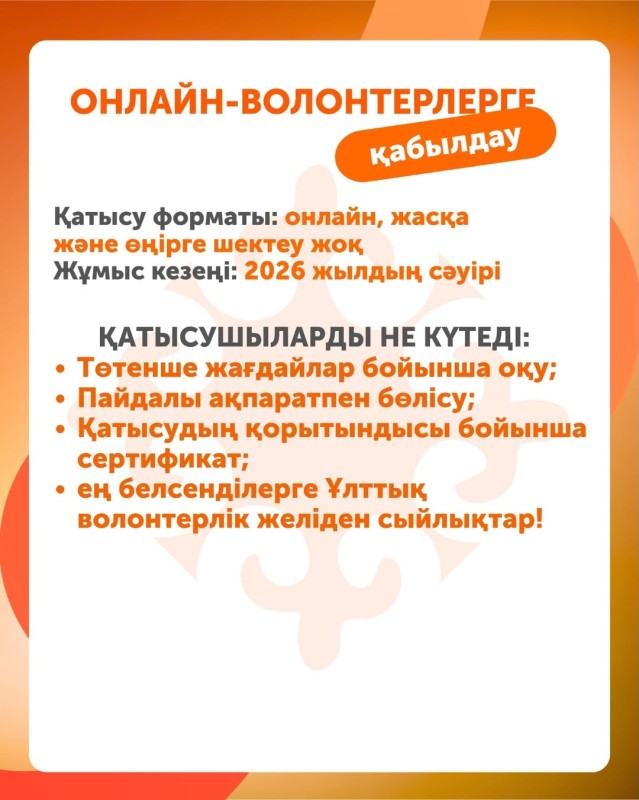 🚨 Ұлттық волонтерлік желі AMAN жобасына — төтенше жағдайлар волонтерлігін дамытуға қосылуға шақырады!