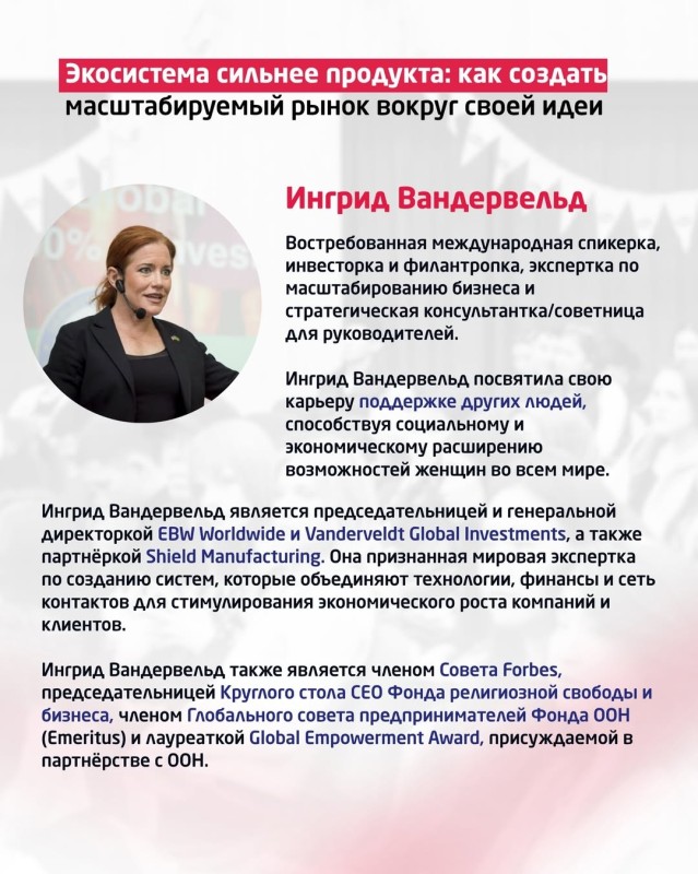 Ингрид Вандервельдт — востребованная международная экспертка по масштабированию бизнеса и стратегическая советница для руководителей.
