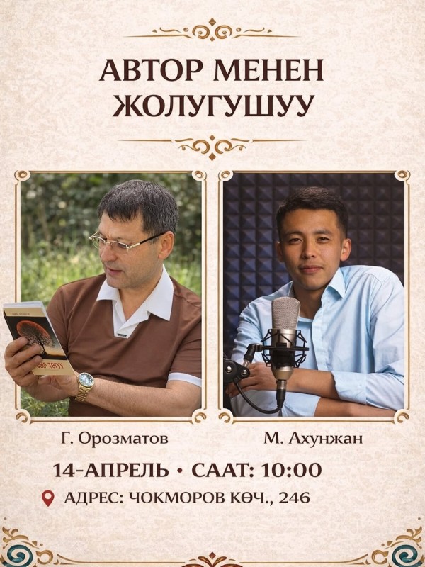 📚 23-апрель — Бүткүл дүйнөлүк китеп жана автордук укук күнүнө карата уюштурулган “Автор менен жолугушуу” кечесине баарыңыздарды чакырабыз!