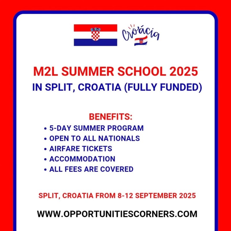 Visit: https://opportunitiescorners.com/m2l-summer-school-in-croatia/