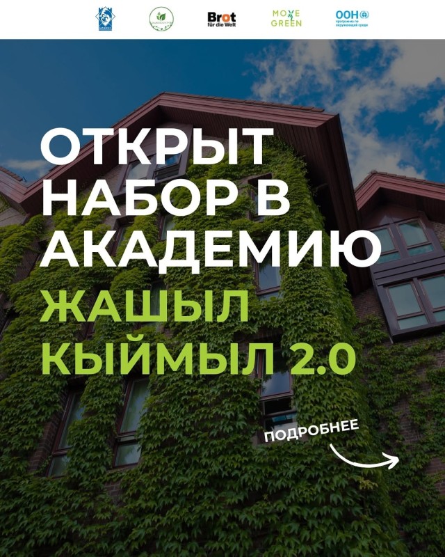 Академия «Жашыл Кыймыл 2.0» проводится МувГрин в сотрудничестве с Мэрией города Бишкек, МП «Бишкекзеленстрой» при поддержке Программы ООН по окружающей среде и международного агентства «Хлеб для мира» (Bread for the World).