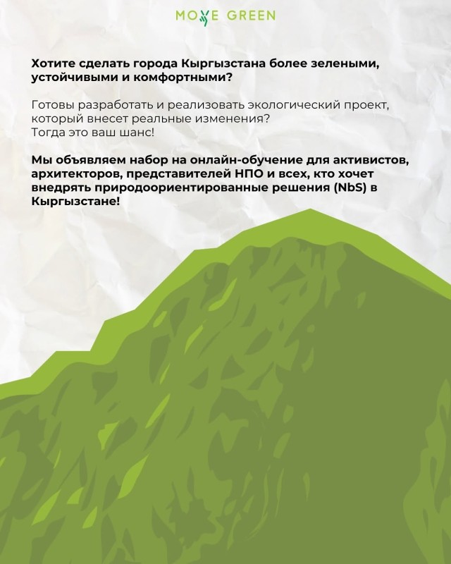Мы объявляем набор на онлайн-обучение для активистов, архитекторов, представителей НПО и всех, кто хочет внедрять природоориентированные решения (NbS) в Кыргызстане!