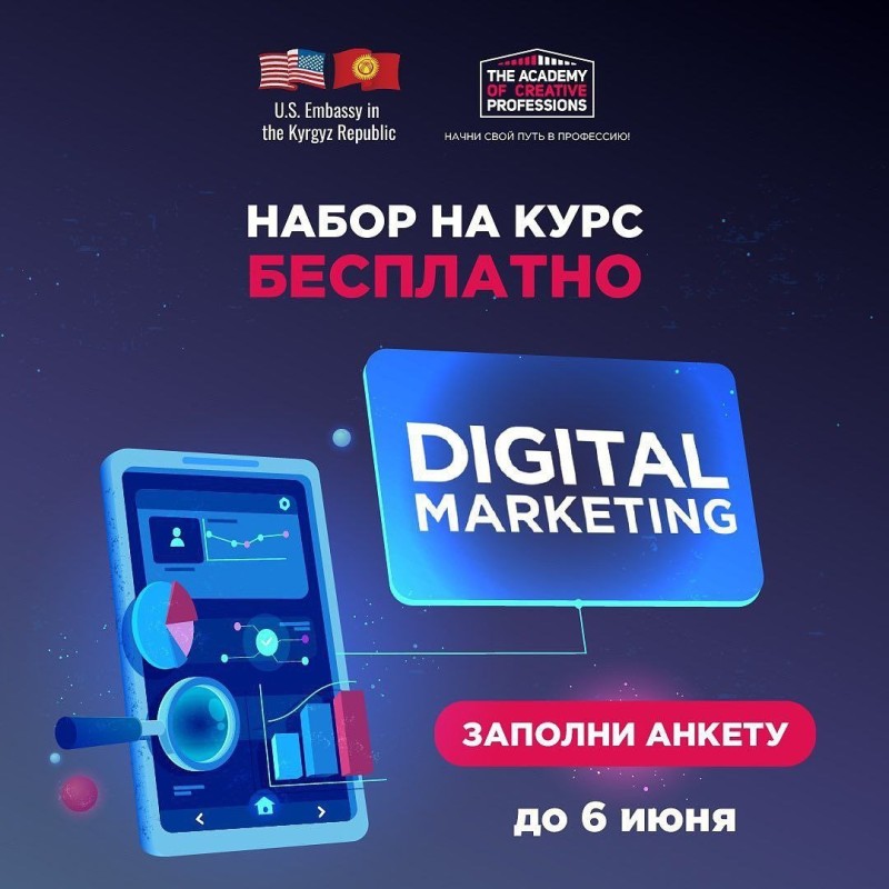 ⚡ Открыт набор на бесплатный курс «Digital Marketing» от лучших специалистов страны для людей 16-35 из семи областей КР!