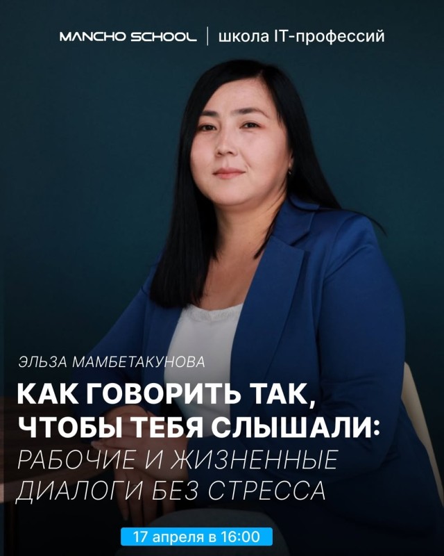 Мы Mancho School приглашаем старшеклассников, студентов и молодых специалистов на открытую встречу с Эльзой Мамбетакуновой.