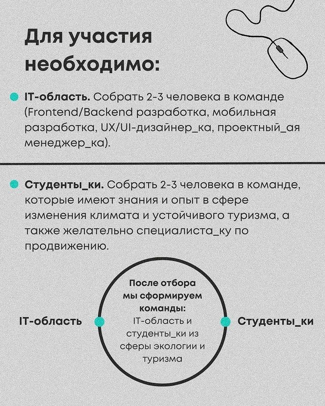 Для регистрации вам необходимо заполнить заявку в шапке профиля. Важно, чтобы все члены_кини команды прошли регистрацию. Можно подавать индивидуальные заявки и мы вас объединим с единомышленниками_цами уже на Экотоне.