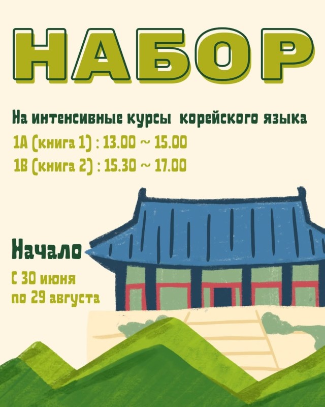 Дорогие студенты, кто закончил базовый курс корейского и 1 книгу, ждем вас на регистрацию! Летний экспресс семестр!✨ регистрация продлится до 20 июня!