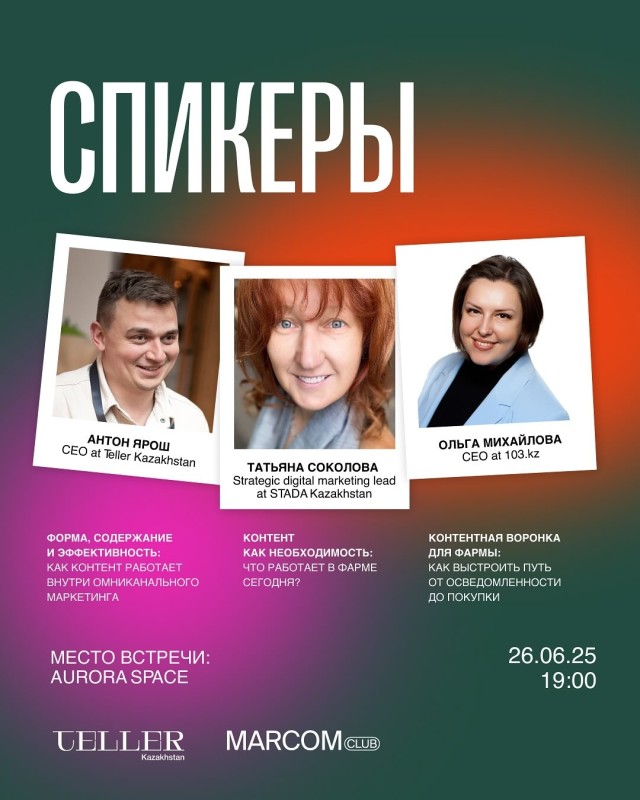 Контент-маркетинг агенттігі Теллер Қазақстан (@teller.kazakhstan) мен Marcom club CA (@marcomclub_ca) сіздерді фармацевтика индустриясындағы контент, коммуникация және мағына туралы ашық әңгіме кешіне шақырады.