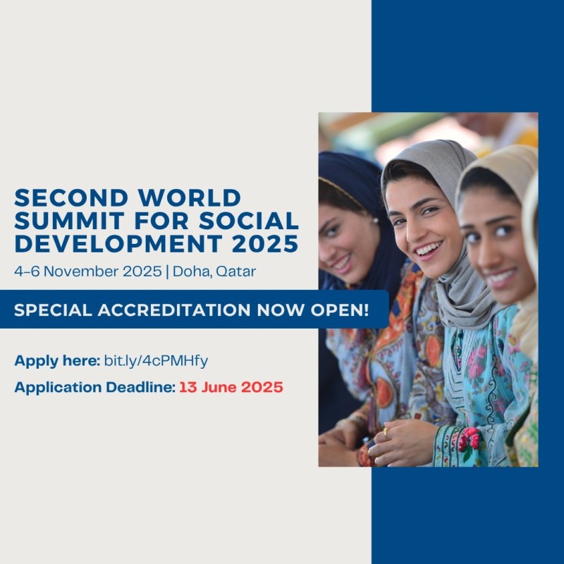 Only ONE WEEK left to apply for special accreditation to the Second World Summit for Social Development 2025 in Doha, Qatar! 🌍