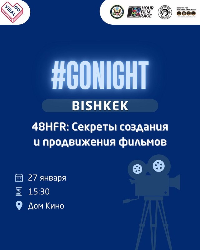 Данная встреча пройдет в рамках ежегодного конкурса короткометражных фильмов “Снять за 48 часов” среди начинающих и практикующих кинематографистов в регионе Центральной Азии. Секретами поделятся режиссеры Асел Жураева и Караш Жанышов.