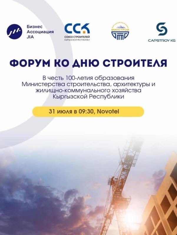 🏗 Союз строителей Кыргызской Республики и Бизнес-ассоциация JIA приглашают вас на торжественное мероприятие, посвящённое Дню строителя, который отмечается 2 августа.