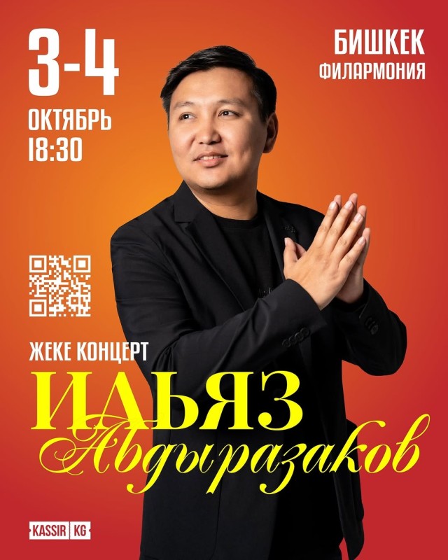 🎤 Ильяз исполнит такие хиты, как «Мени аяп кой», «Азап», «Женеке», «Сагынамын сени» и другие.