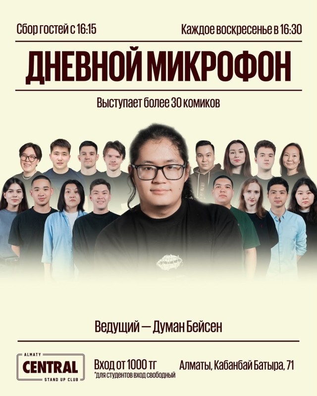 Оффлайн: Казахстан, г. Алматы, Almaty Central Stand Up Club