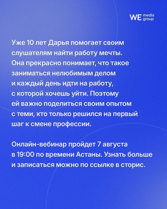 Онлайн-вебинар пройдет 7 августа в 19:00 по времени Астаны. Узнать больше и записаться можно по этой