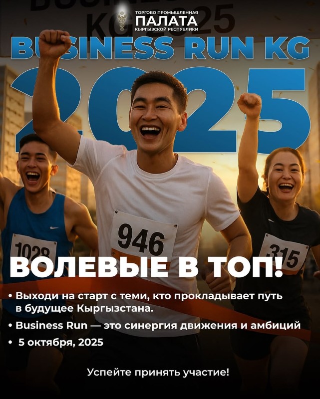 12 октября в Бишкеке пройдёт уникальное событие от Торгово-промышленной палаты КР забег для бизнеса.