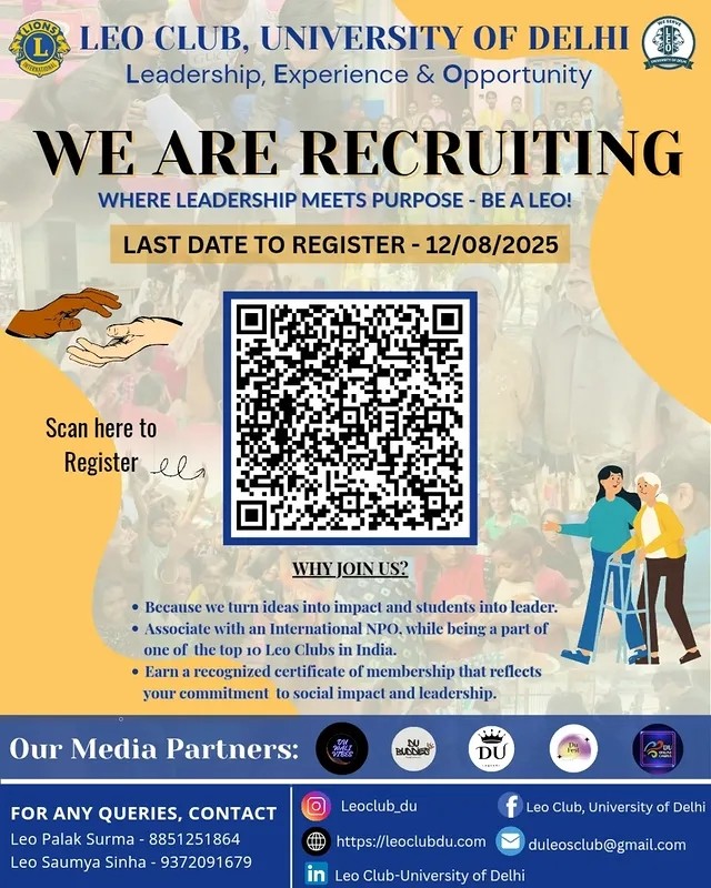Клуб Leo, набор персонала, Делийский университет, студенческие лидеры, молодёжь за перемены, влияние на сообщество, волонтерские возможности, лидерство, студенческая жизнь, студенческая инициатива, социальное влияние, присоединяйтесь к движению, набор сотрудников Leo, деятели перемен, Клуб Leo, Делийский университет