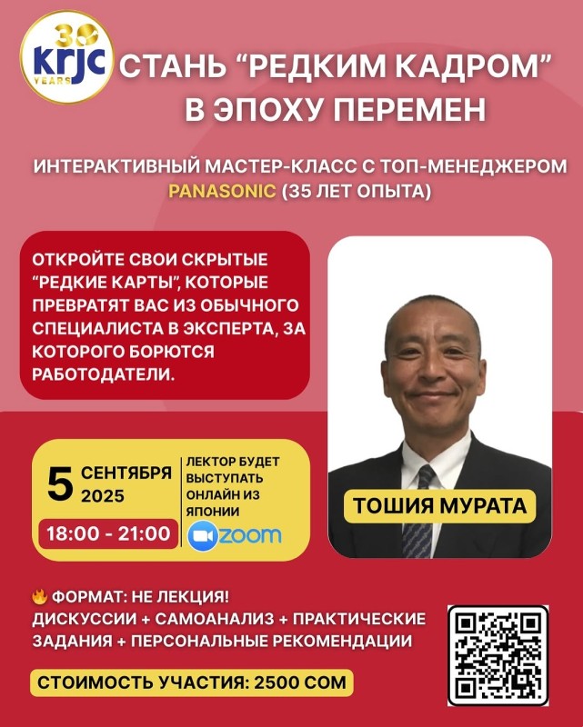 Можно участвовать онлайн через зум или офлайн в KRJC (ул. Турусбекова 109, 7-й корпус КНУ) 💰 Стоимость - 2500 сом