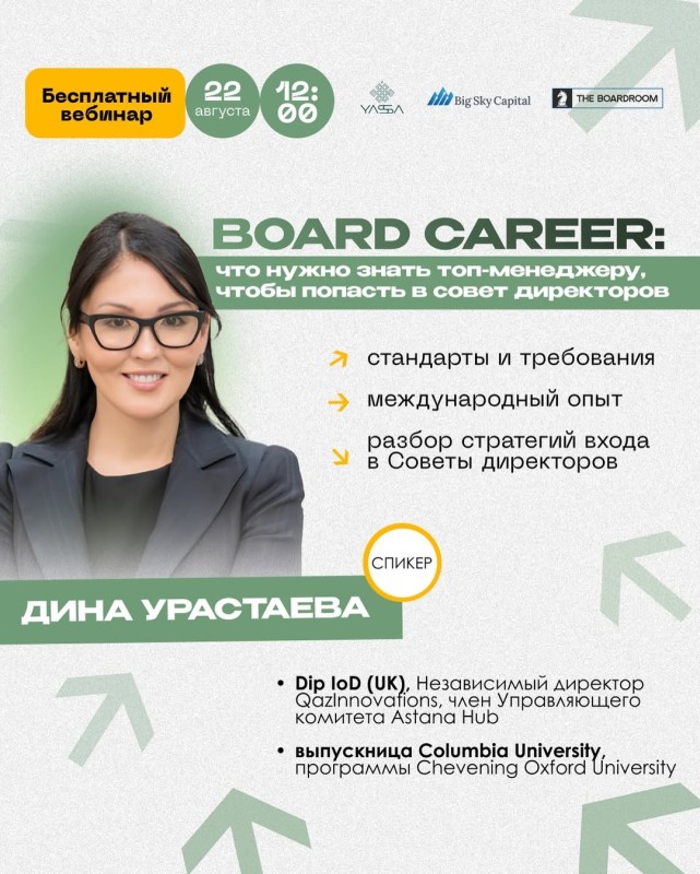 - Независимый директор QazInnovations, член Управляющего комитета Astana Hub