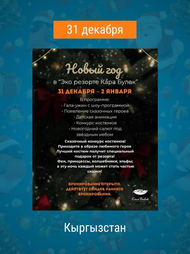 Если вы всё ещё думаете, где провести Новый год в Бишкеке – не откладывайте. 31 декабря бывает раз в году, а удачно выбранное место может задать настроение на весь следующий год ✨
