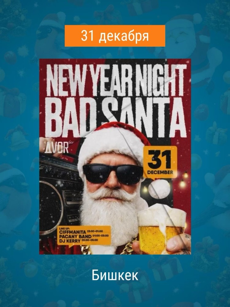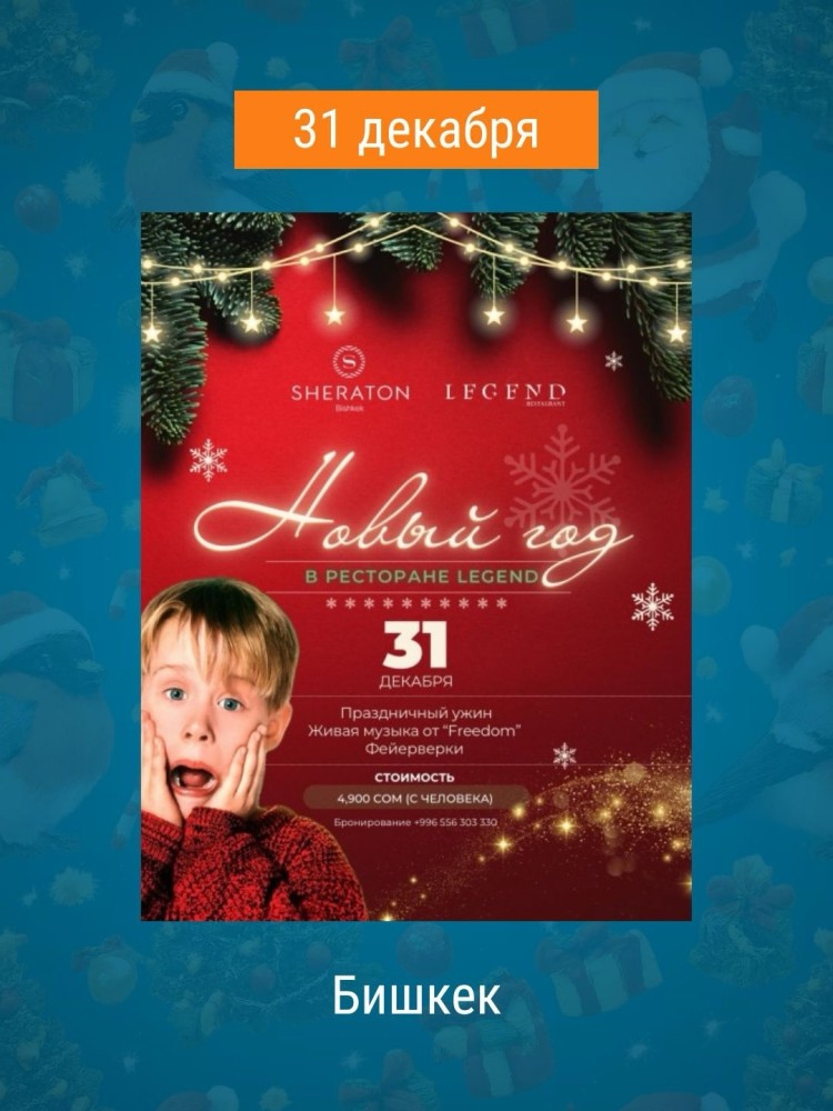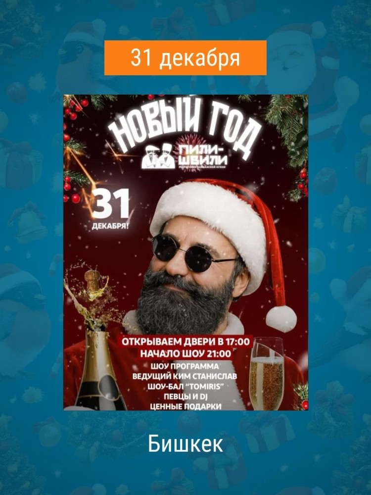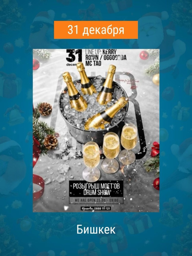 31 декабря – самый популярный запрос в поиске, потому что каждый год тысячи людей задаются одними и теми же вопросами: куда сходить 31 декабря, где отметить Новый год, новогодние мероприятия в Бишкеке, куда пойти в новогоднюю ночь. И если вы тоже ищете идеальный вариант – вы точно по адресу.