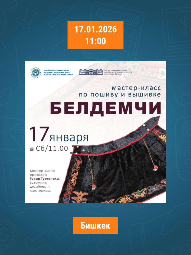 Мастер-класс по пошиву и вышивке пояса белдемчи | Бишкек 17.01.2026