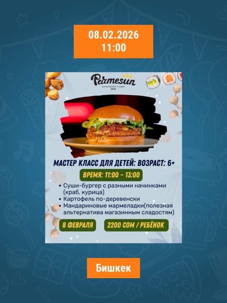 Кулинарный мастер-класс для детей 6+ | Готовим суши-бургер, картофель по деревенски и мармеладки | Бишкек 08.02.2026