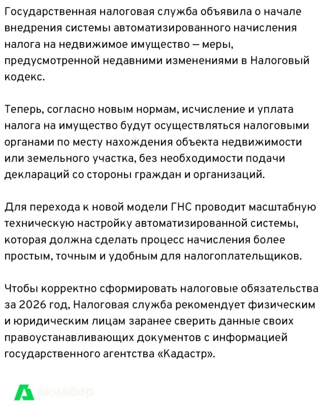 Чтобы корректно сформировать налоговые обязательства за 2026 год, Налоговая служба рекомендует физическим и юридическим лицам заранее сверить данные своих правоустанавливающих документов с информацией государственного агентства «Кадастр».