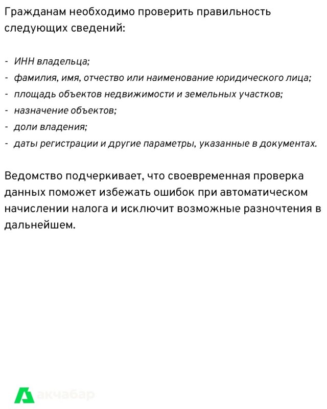 Ведомство подчеркивает, что своевременная проверка данных поможет избежать ошибок при автоматическом начислении налога и исключит возможные разночтения в дальнейшем.