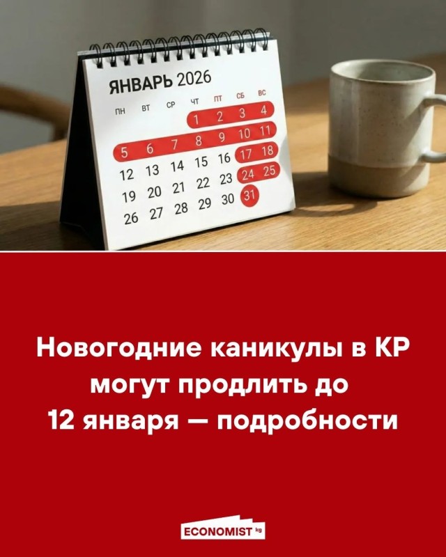 — Минсоцтруда вынесло на общественное обсуждение проект постановления кабмина КР о продлении новогодних каникул 2026 года до 12 января за счет переноса рабочих дней 8–9 января на выходные 7 февраля и 25 апреля. Цель проекта — рационально использовать выходные и нерабочие праздничные дни.