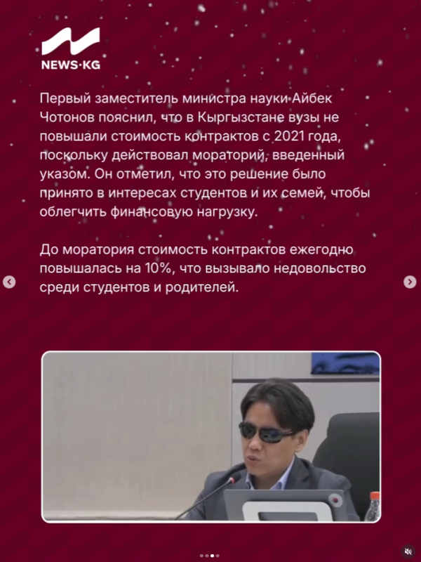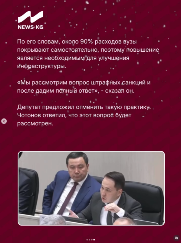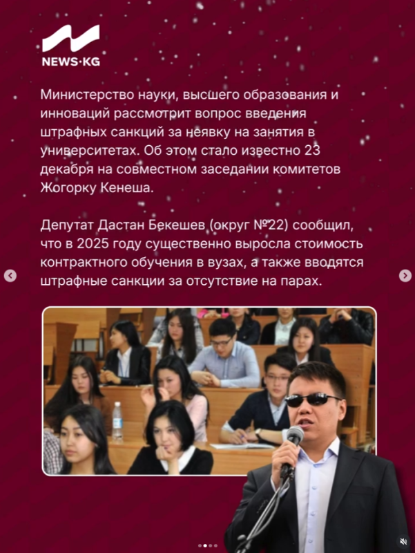 Миннауки Кыргызстана рассматривает введение штрафов за пропуски занятий в вузах на фоне повышения стоимости контрактного обучения. Ведомство пообещало изучить вопрос и позже представить окончательное решение.