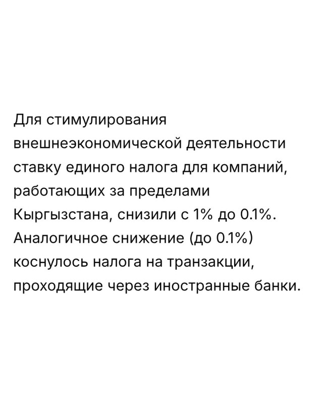 — В Кыргызстане вступил в силу закон, вводящий значительные налоговые послабления для ряда отраслей экономики и физических лиц, документ подписал президент Садыр Жапаров.