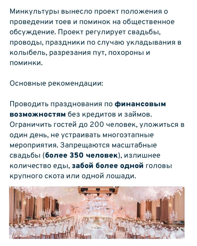 Не допускать крупномасштабные свадьбы (более 350 человек);
