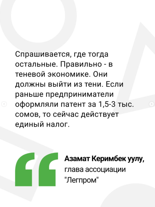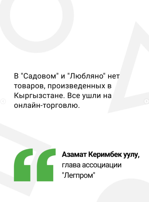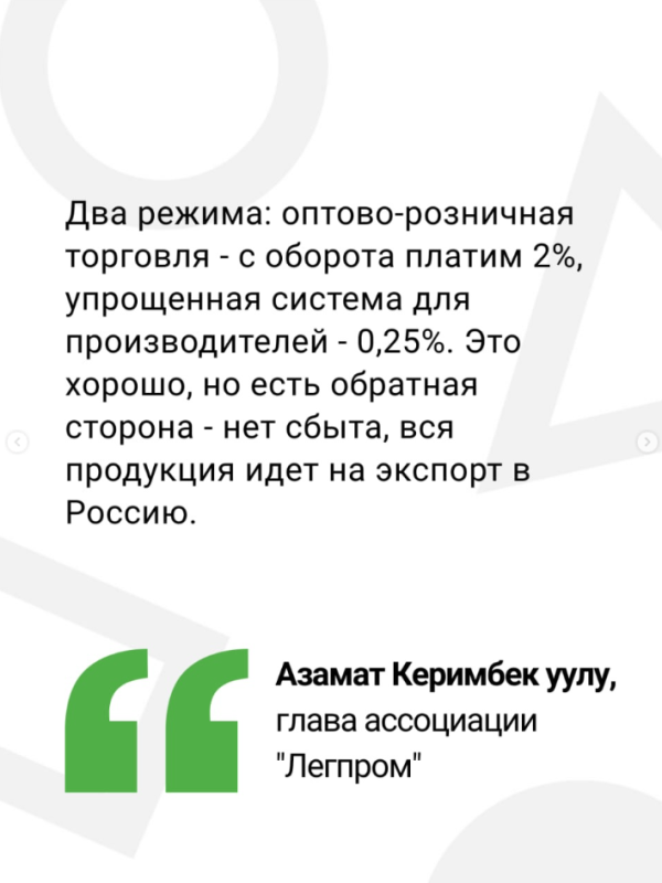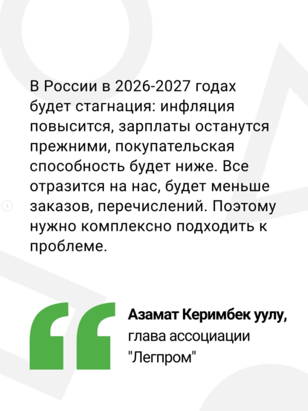 Стагнация в России неизбежно скажется на кыргызстанских производителях, сказал глава ассоциации «Легпром» Азамат Керимбек уулу на заседании депутатской группы «Ала-Тоо».
