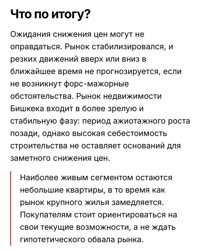 — В Бишкеке средняя цена квадратного метра жилых квартир с января по декабрь 2025 года выросла почти на 24%. Судя по динамике прошлых лет, в начале года стоимость жилья традиционно немного повышается. Economist.kg поговорил с руководителем инвестиционно-брокерской компании Пазылджаном Илимовым о текущих тенденциях на рынке и ожиданиях на 2026 год.