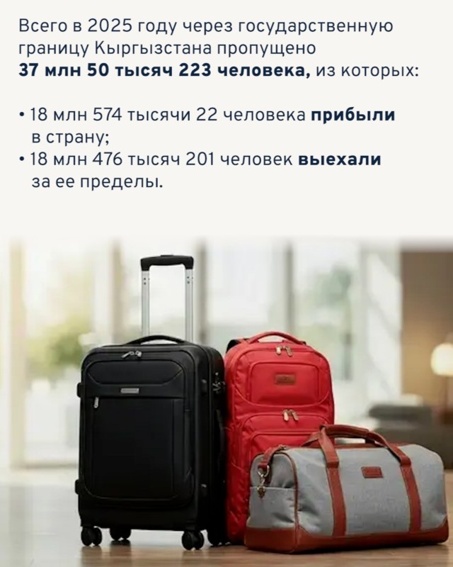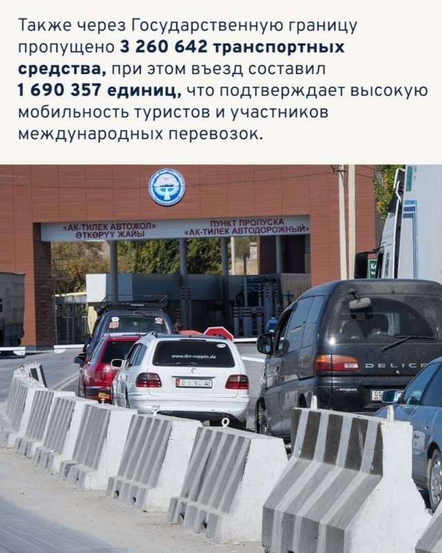 Всего в 2025 году через государственную границу Кыргызстана пропущено 37 млн 50 тысяч 223 человека, из которых: