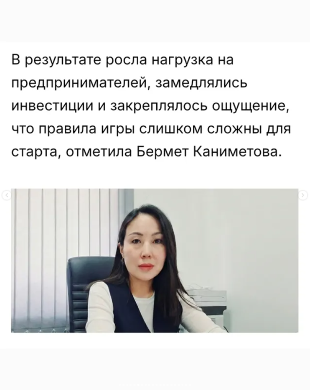 О том, как это стало возможным и что изменится для предпринимателей, рассказала заведующая международным отделом и целями устойчивого развития Национального института стратегических инициатив при президенте КР Бермет Каниметова.