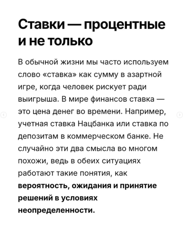 — Рынок ценных бумаг привычно ассоциируют с умелыми математиками-прогнозистами, банкирами в дорогих костюмах, лоском Уолл-Стрит или хотя бы с пригожими графиками и формулами на экранах модных ноутбуков. Процентные ставки являются маркерами, на основе которых и аналитики, и обычные граждане принимают решения, связанные с финансами.