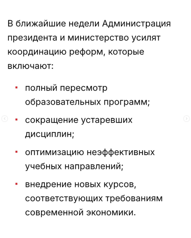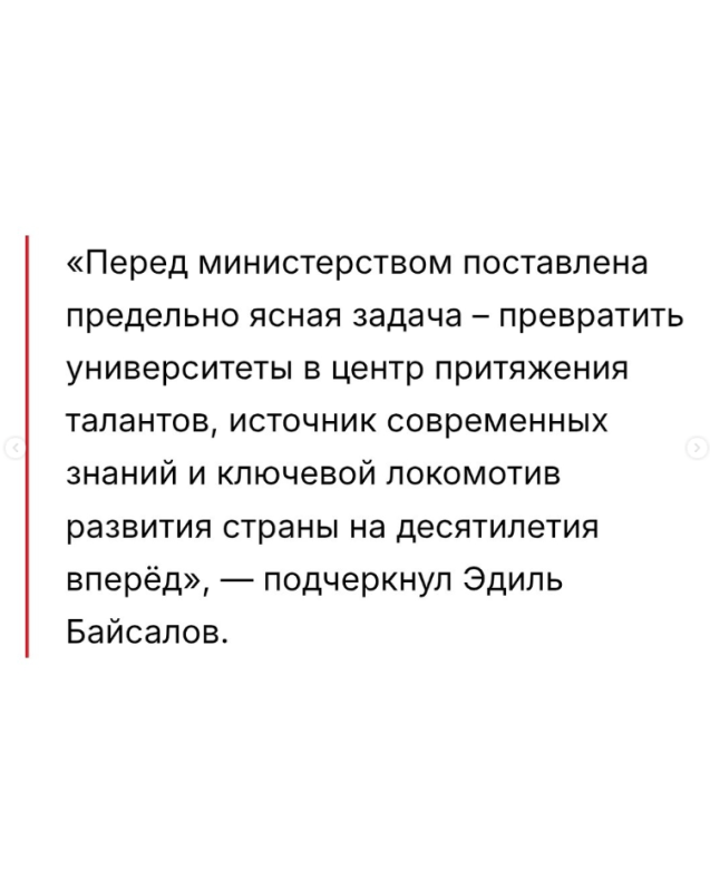 — Зампредседателя кабмина Эдиль Байсалов 12 февраля анонсировал запуск ускоренной модернизации госуниверситетов на заседании коллегии Министерства науки, высшего образования и инноваций Кыргызстана. По его словам, создание нового профильного ведомства стало осознанным шагом властей для глубокого обновления образовательной и научной среды.
