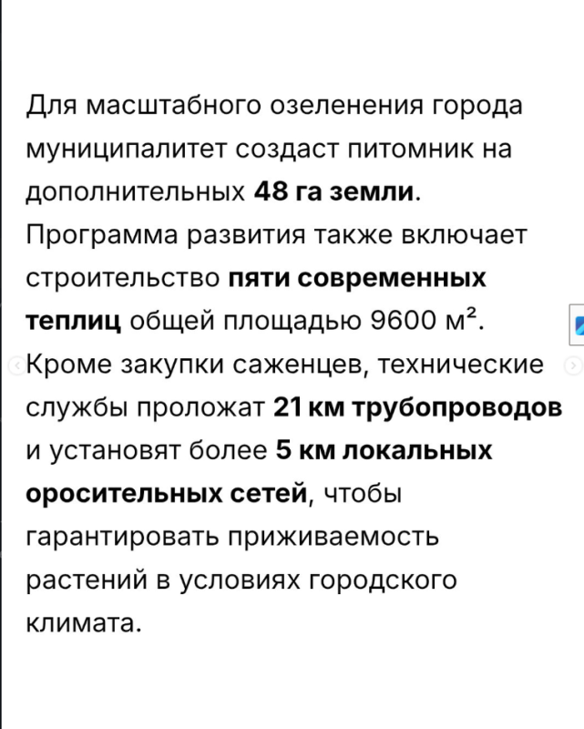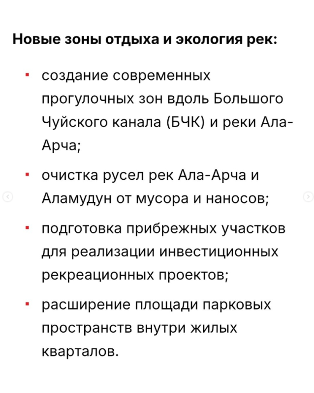 — Мэрия Бишкека высадит 50 тысяч новых саженцев и проложит 21 км магистральных оросительных сетей в 2026 году, сообщил мэр Айбек Джунушалиев столицы на итоговом заседании коллегии.
