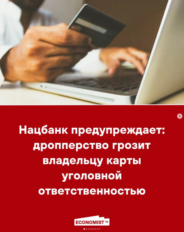 — Нацбанк разъяснил, чем опасно дропперство и какую ответственность несет владелец банковской карты. Регулятор предупреждает: передача своих счетов, карт или персональных данных третьим лицам может привести к уголовным последствиям.