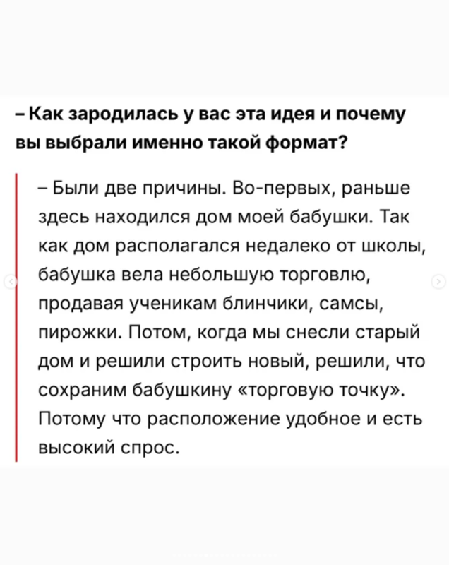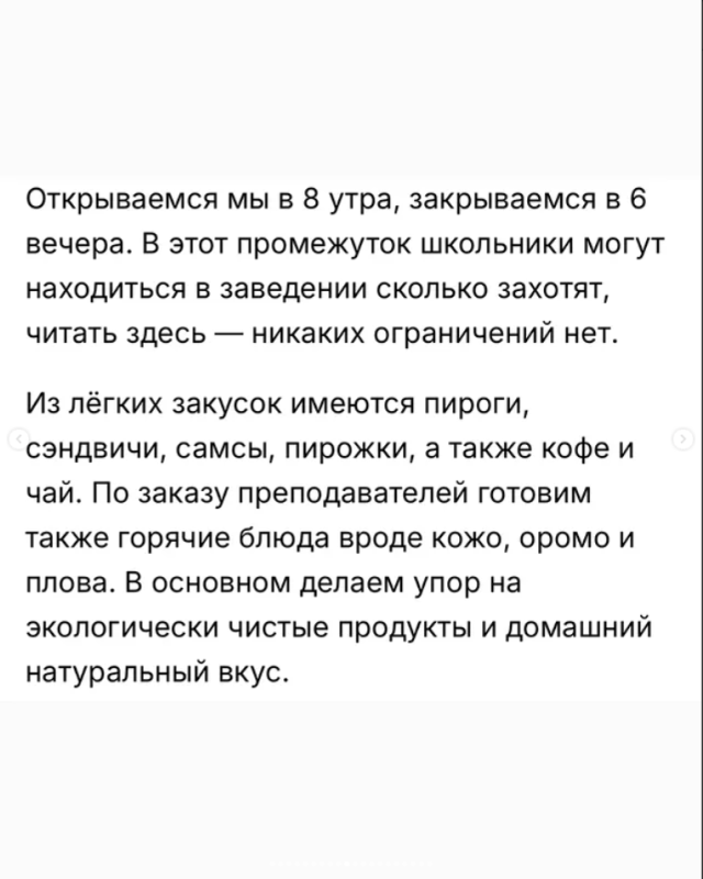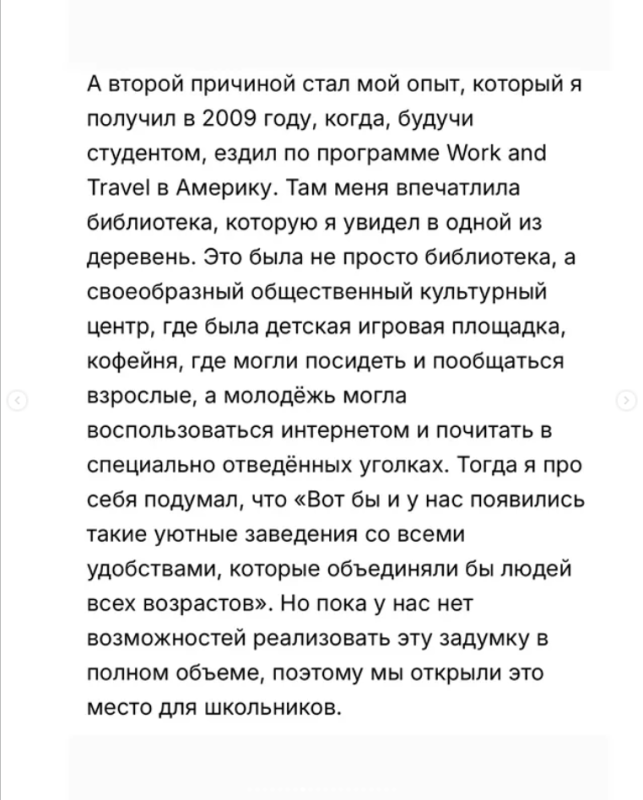 В этом заведении созданы все условия для того, чтобы школьники могли читать книги, изучать языки и питаться экологически чистыми продуктами. Герой, утверждающий, что «всё начинается с мечты», в эксклюзивном интервью изданию «Ишкер Медиа» @ishker_media рассказал о том, как появилась эта идея, как он смог её реализовать, какой опыт дали ему грант и обучение, а также с какими трудностями он столкнулся при запуске дела и каковы его планы на будущее.