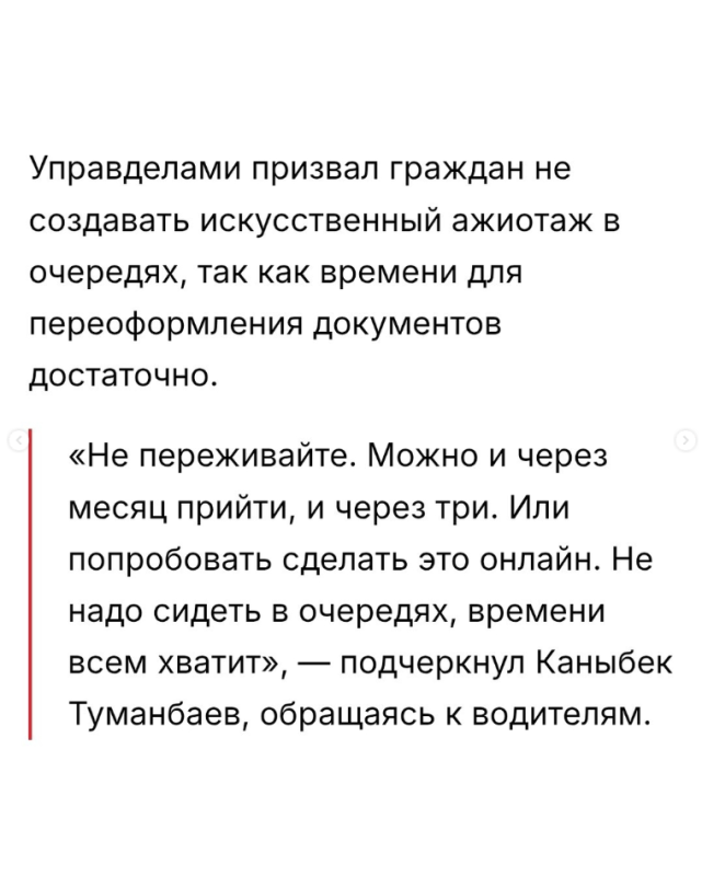 — Бесплатный обмен старых бессрочных водительских удостоверений в Кыргызстане продлится до конца 2026 года, сообщил управляющий делами президента Каныбек Туманбаев во время визита в филиал ГЦРТС в Оше.