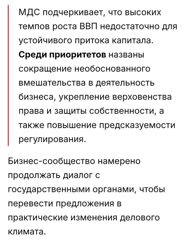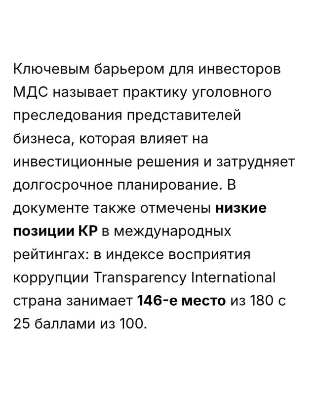 — Международный деловой совет (МДС) представил аналитическую справку о состоянии бизнес-среды в КР по итогам 2025 года. Несмотря на двузначные темпы роста экономики, эксперты отмечают системные проблемы, которые мешают превращать количественный рост в качественное развитие.