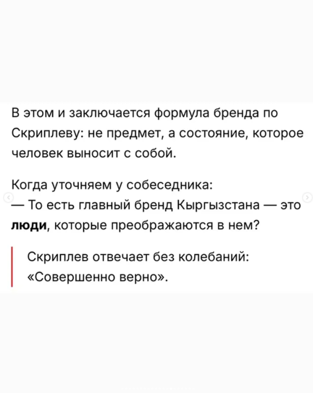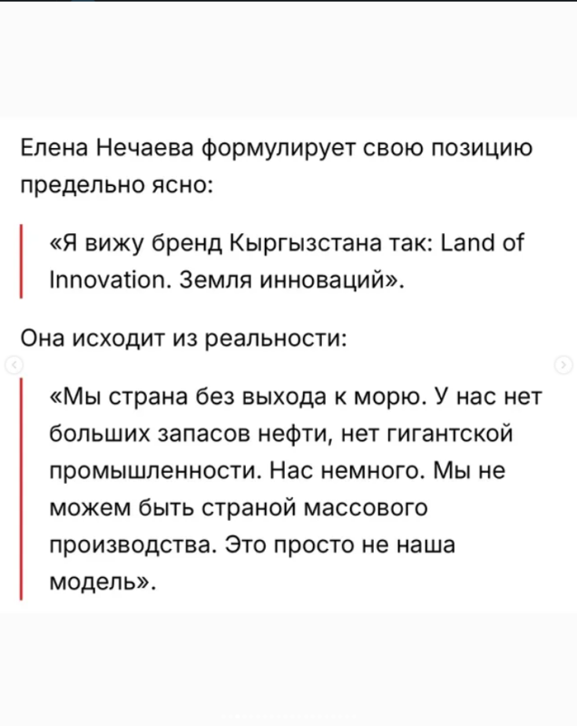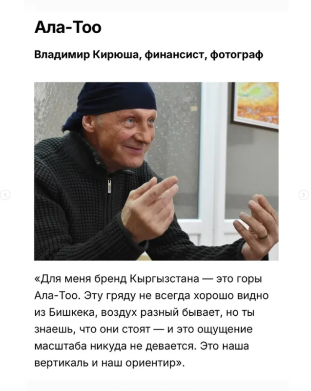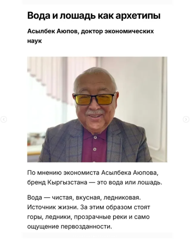 — У Казахстана есть шоколад, у Швейцарии — часы, у Грузии — вино. Кыргызстан же все еще находится в поиске собственного узнаваемого символа — того, который можно было бы безошибочно связать со страной. Что это может быть: вода, горы, лошадь, еда, технологии или сами люди? Economist.kg решил задать этот вопрос собеседникам из разных сфер, чтобы понять, где искать настоящий бренд Кыргызстана.