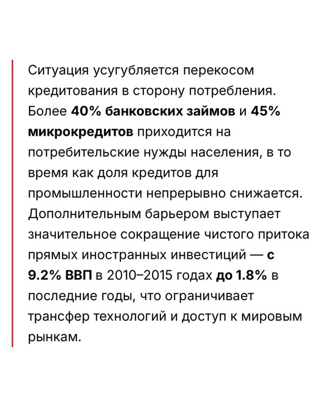 — В банковской системе КР зафиксирован парадокс: при наличии свободных ресурсов в размере $1.3 млрд и коэффициенте ликвидности в 86.2%, что почти вдвое выше норматива, частный сектор продолжает испытывать дефицит финансирования.