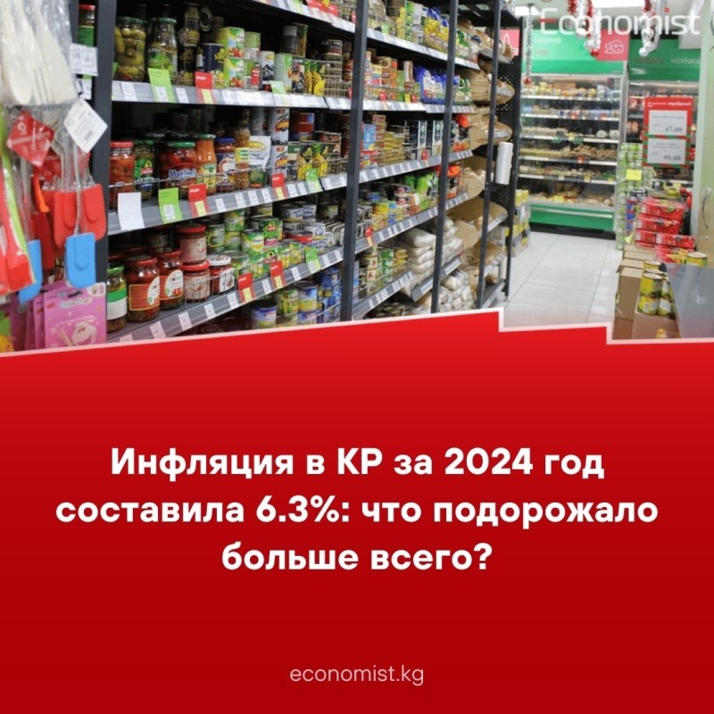 В период с января по декабрь 2024 года прирост потребительских цен и тарифов в Кыргызстане составил 6,3% по сравнению с показателями декабря 2023 года. Такие данные представлены в отчете Нацстаткома.