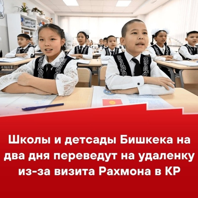 В связи с визитом президента Таджикистана Эмомали Рахмона в Бишкек 12–13 марта все школы и детские сады столицы временно перейдут на дистанционное обучение. Об этом сообщили в столичном муниципалитете.