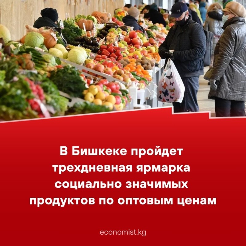 С 1 по 3 мая 2025 года в Бишкеке состоится ярмарка социально значимых продуктов питания и потребительских товаров. Мероприятие организует Минсельхоз КР.